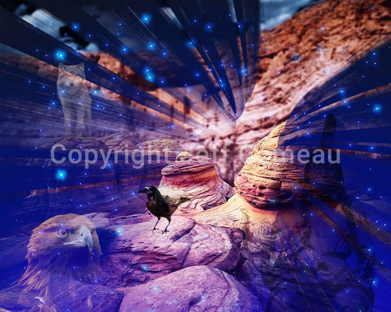 After reading Carlos Castaneda, I was inspired to create a few Native American pieces that involved shamanism. Perhaps this could be the vision of a shaman.
