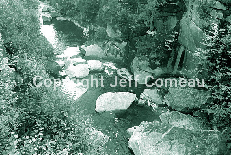 This image was created from a photograph of The Flume in Franconia Notch, NH. I then applied a Photoshop effect to it and added a green tint.